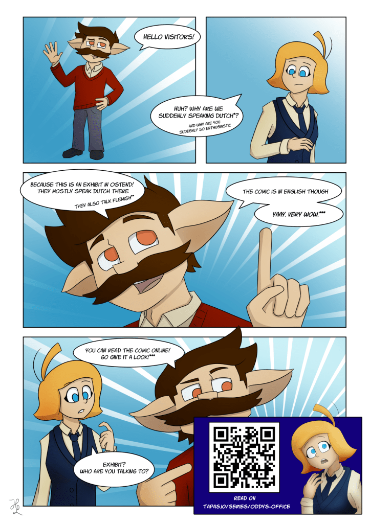 On the Oddy wall, we included a special page written for the exhibit. On the left is the original Dutch, on the right an English translation.